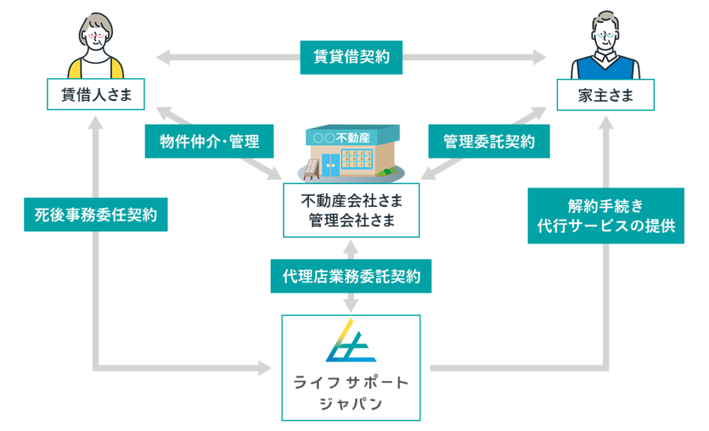 | 不動産業者様 (オーナー様・管理会社様含) | 家賃債務保証会社様 | ライフサポートジャパン | |
